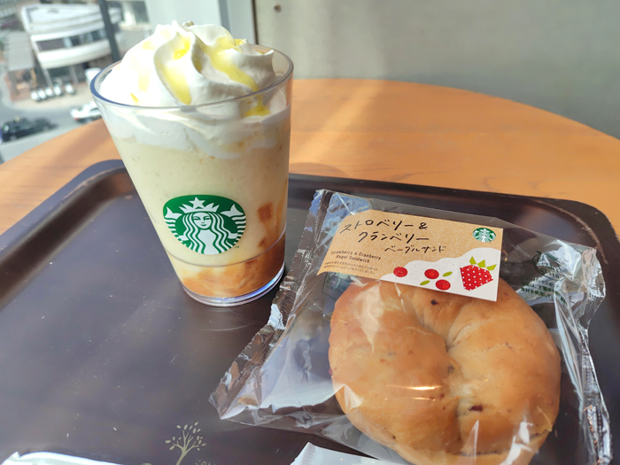 そして、お腹が空いていたので、ストロベリー&クランベリー ベーグルサンドを。