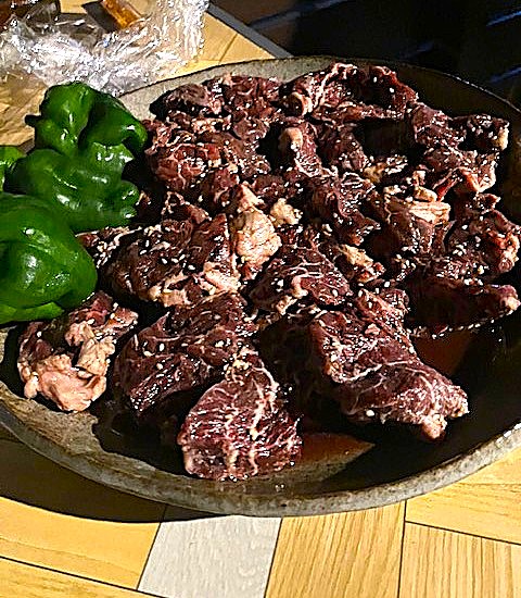 お肉に下味をつけて準備はOK :onpu07: ちょこっと緑も置いてみました暗かったせいもあり、写真では美味しそうに見えないお肉たち・・・