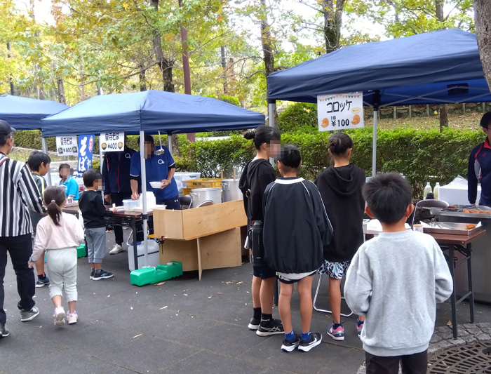 「第11回香寺スポーツセンター祭り」は、主に武道館で行われており、武道館前には縁日的な遊びから食べ物までさまざまな模擬店が並んでいました。