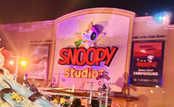 18:00頃のユニバ。空は真っ黒に染まり、パーク内の建物やアトラクションがネオン色にぎらつき始めました![]()