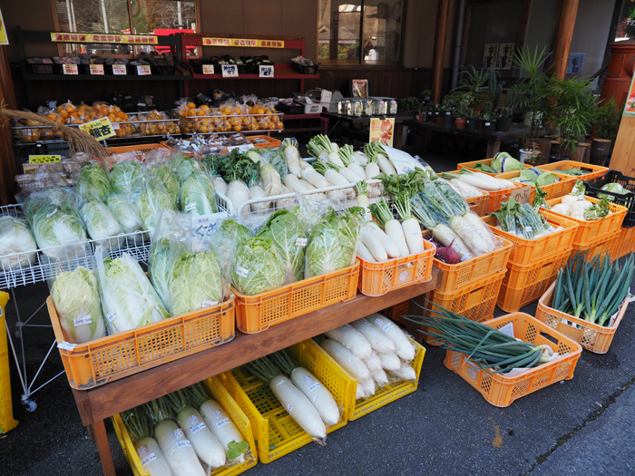 門前物産館には近隣の農家さんのとれたての野菜がずらっと並び、それらをお買い求めのお客さまで大賑わい![]()