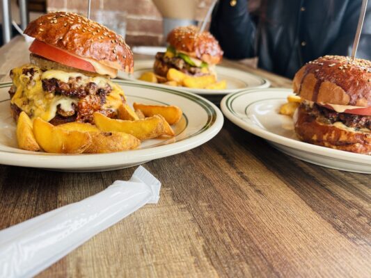 ナイフとフォークを使って食べるタイプのハンバーガーは人生初