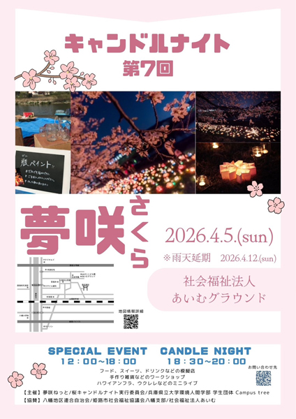 第7回夢咲さくらキャンドルナイト[姫路市]【開催場所】2026年4月5日(日)12:00~20:00 ※雨天時は2026年4月12日(日)に順延