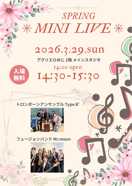トロンボーンアンサンブル Type B’とフュージョンバンド Mr.moonによるミニライブが開催されます。