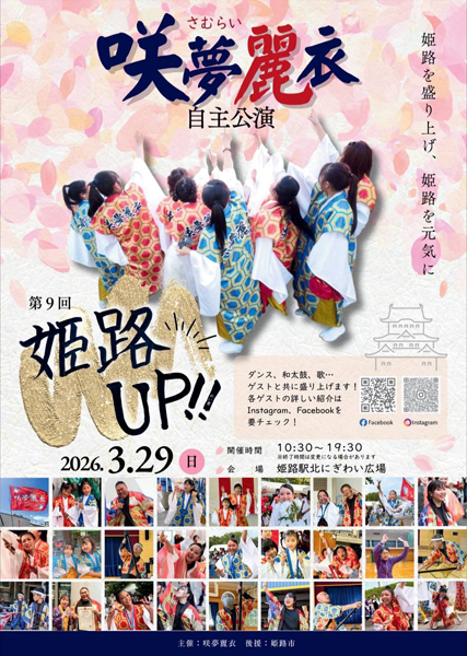 よさこいチーム 咲夢麗衣の自主公演「第9回姫路UP!!」が姫路駅北にぎわい交流広場にて開催されます。